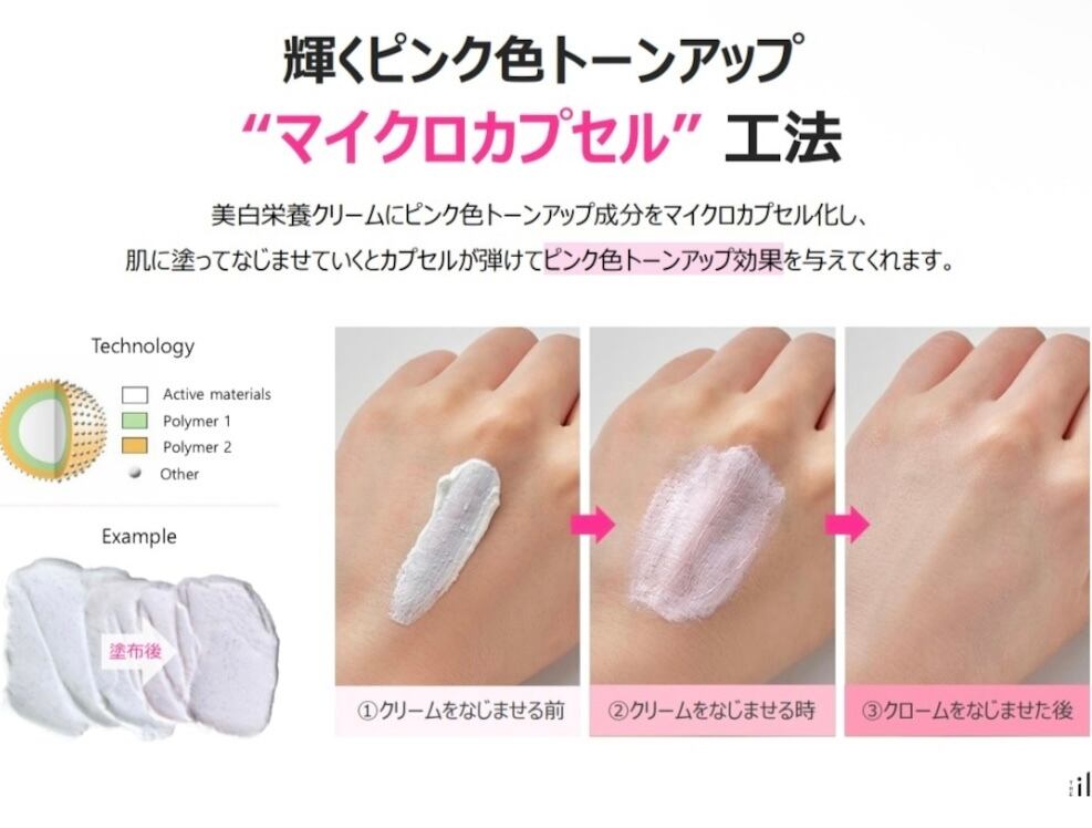 ピンク色のトーンアップ成分をマイクロカプセル化。